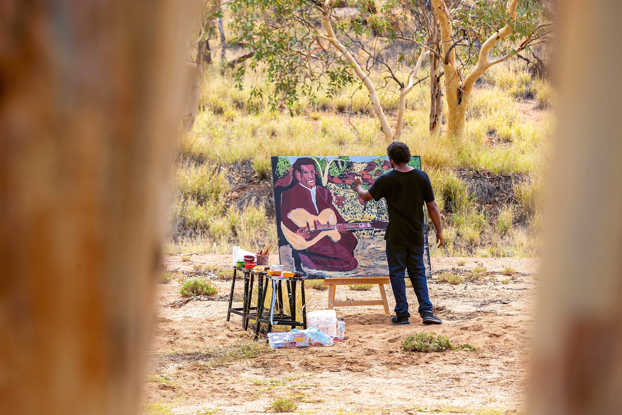 People often ask me, ‘Why do you paint the queen, or politicians in the desert, in the Central Australian landscape?’ Being out of place, being out of your comfort zone takes away some of your power—I know how this feels—so I paint these influential figures like royals and world leaders on Country—on Aboriginal land—as a way of putting them on the same level as me and everybody else, so we’re all equal.