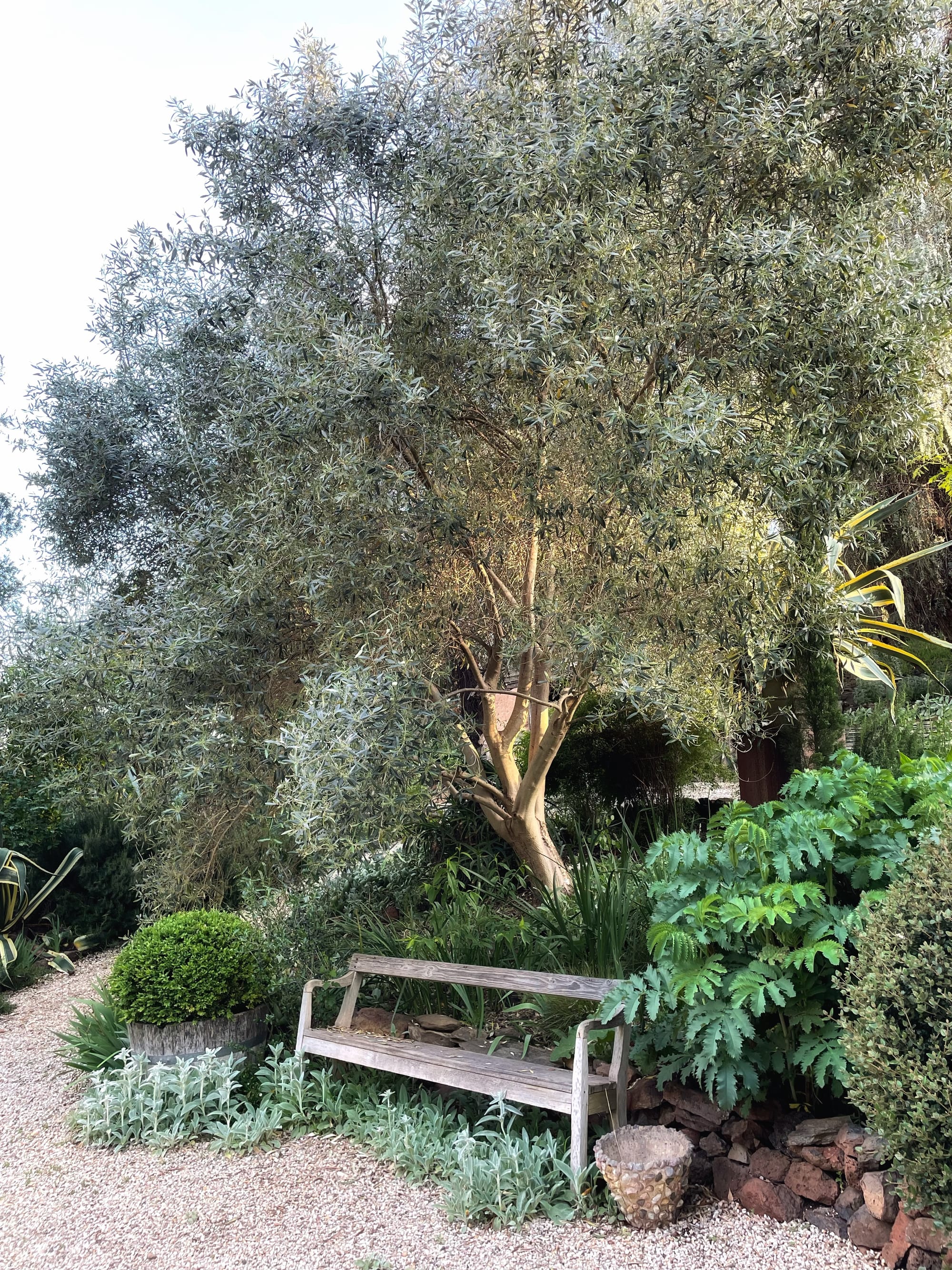 Wonderful in colour against sun-bleached lawns and equally lovely lost in heavy mist over winter. Their gnarled trunks give the garden a tortured romance. The olives themselves are, of course, the real bounty, and they are delicious – delicious also to the rosellas that nibble quietly at them through the autumn.