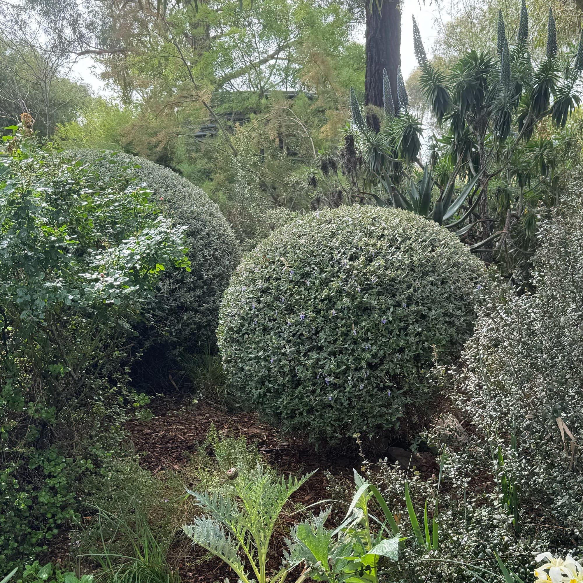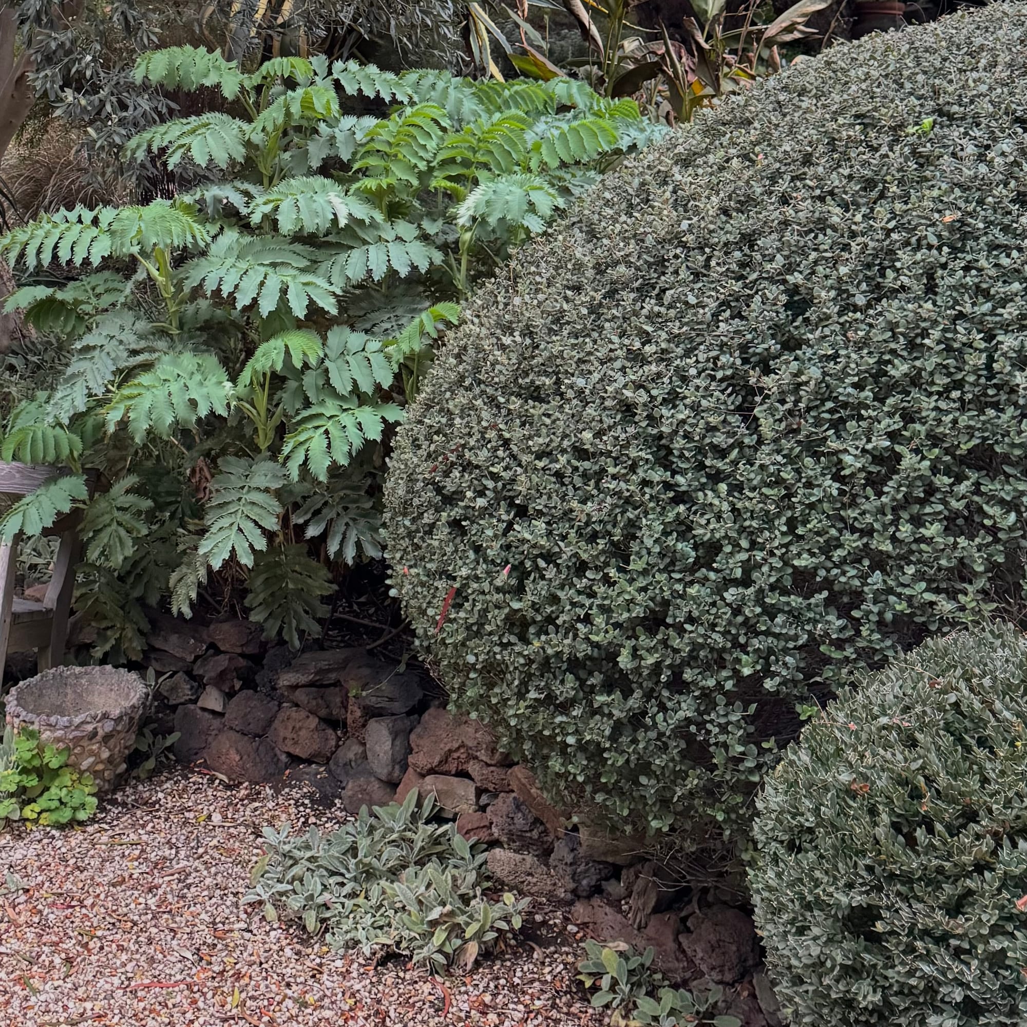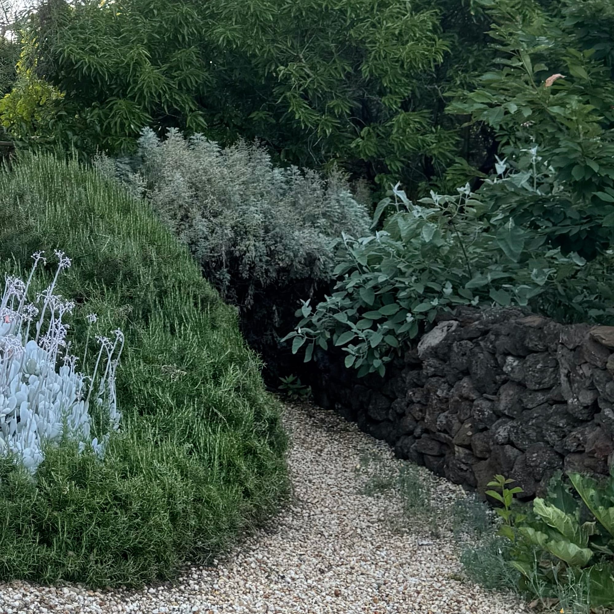 Great for clipping into shapes. Like many things here at The Stones, it sulks for a couple of years at first, but once established it’s tough and reliable. It never mithers for water, and its dull, soft, grey-green leaves are quiet on the eye. Unclipped, I've always felt that it gives a sense of distance and depth to the garden.
