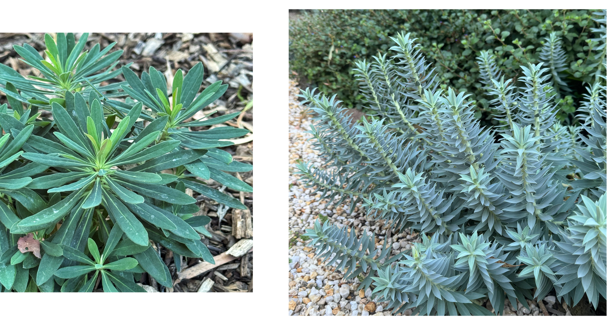 These two varieties, among other euphorbia (although not all), work especially well here in central Victoria. They are very tough and give our garden year-round interest. There’s nothing more compelling than E. rigida's vivid chartreuse blooms during spring, then watching it fade to an intangible pink by summer’s end. It's a little like watching a sunset in slow motion.