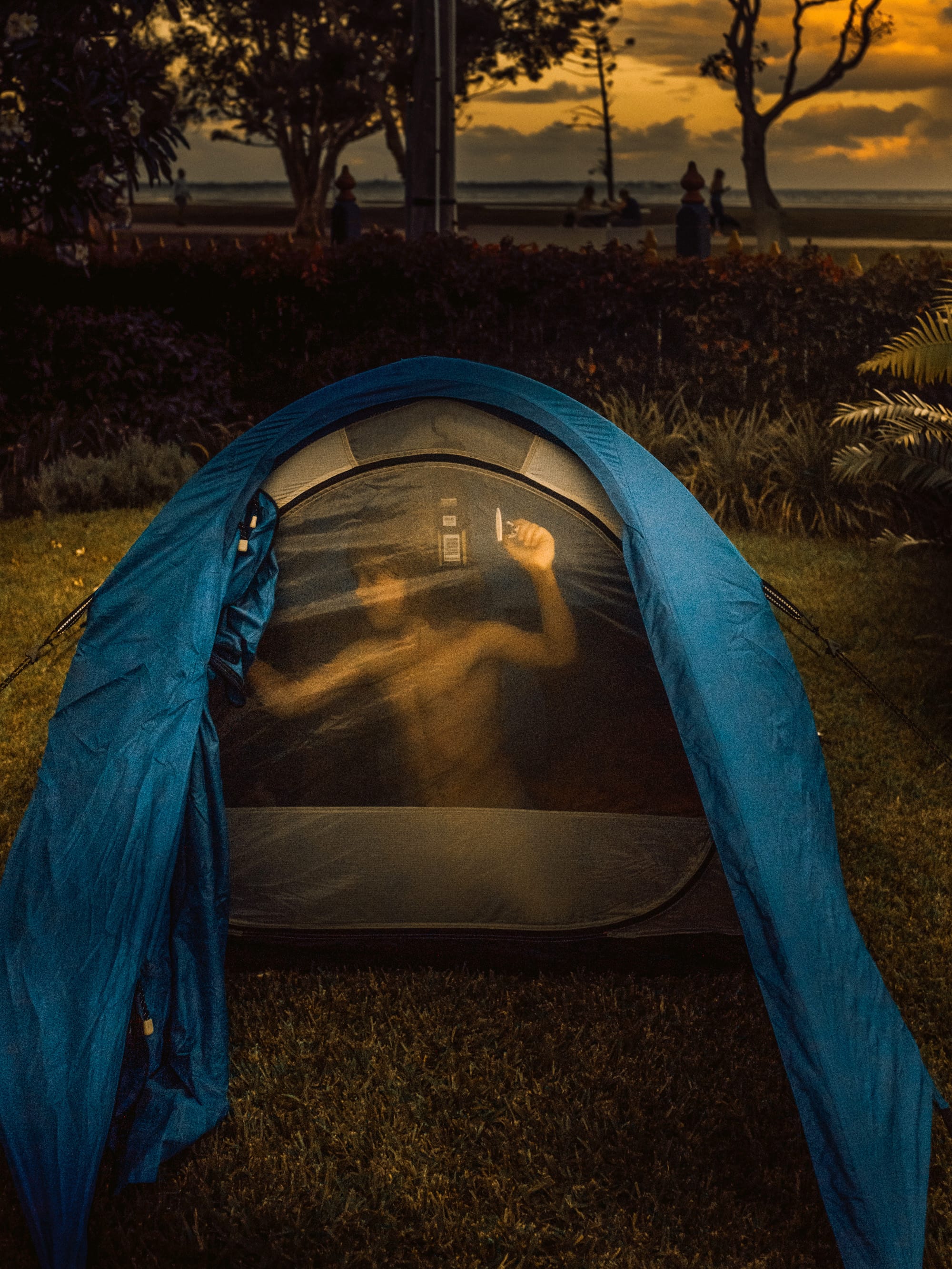 Elio in the Bath (2019): “My son was only a few weeks old and appeared so vulnerable to me.” After the flood (2022): “This image was made at a local waterhole I’ve visited since I was a child. Seeing the way the flood altered the landscape permanently by clearing big trees and enormous rocks made me understand the strength of the floodwaters.” Summer Storm (2022): “The storms before the 2022 floods were more intense and frequent than any previous summers I could recall.” Black Summer Camping (2019): “My son Ari set up camp in his grandfather’s front yard in the hazy night light from the bushfires.” Photography by Lisa Sorgini.